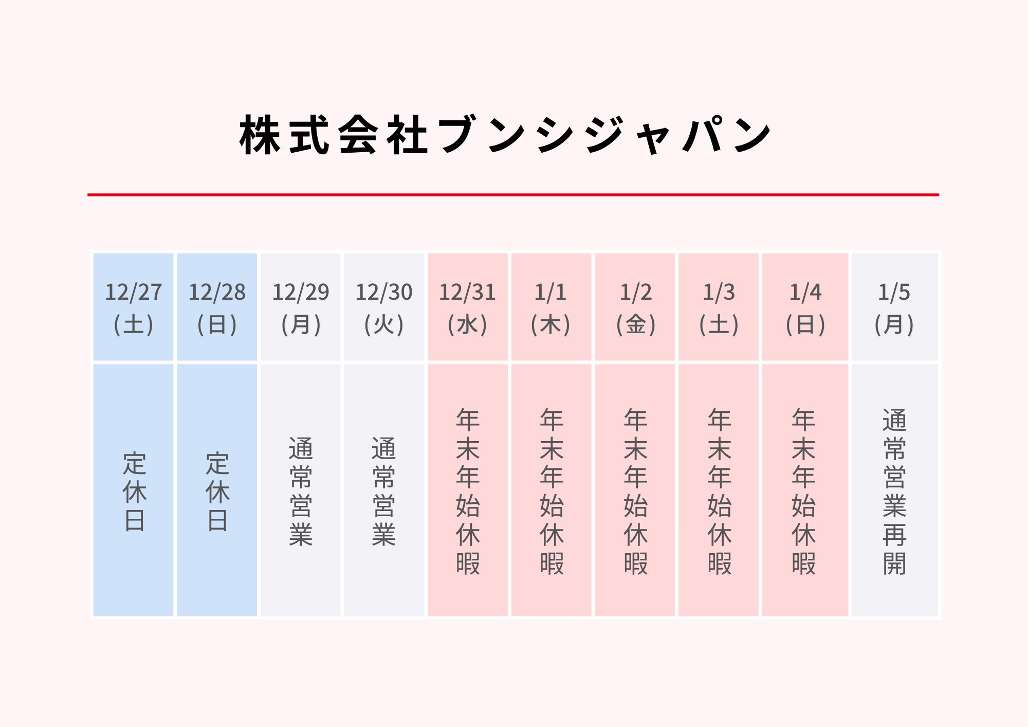誠に勝手ながら、当グループは下記の期間を年末年始休暇とさせて頂きます。